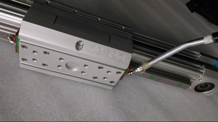 使用線性滑臺(tái)模組時(shí)潤(rùn)滑是非常必要的,如果沒(méi)有充分的潤(rùn)滑,運(yùn)轉(zhuǎn)時(shí)摩擦阻力會(huì)增加進(jìn)而可能會(huì)成為縮短產(chǎn)品壽命的主要原因,可依照系統(tǒng)運(yùn)行速度,使用環(huán)境等需求做適當(dāng)?shù)倪x擇,潤(rùn)滑給油的頻率根據(jù)使用條件與環(huán)境而有所不同,一般情形建議每次運(yùn)行20km補(bǔ)充油脂一次。