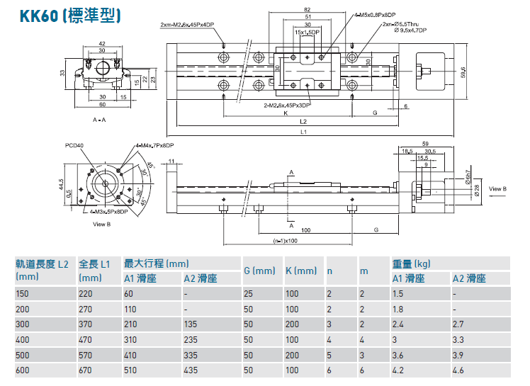 東莞上銀線性模組KK6005C-600A1-F0,上銀KK模組/導(dǎo)軌引動器KR型特點如下: