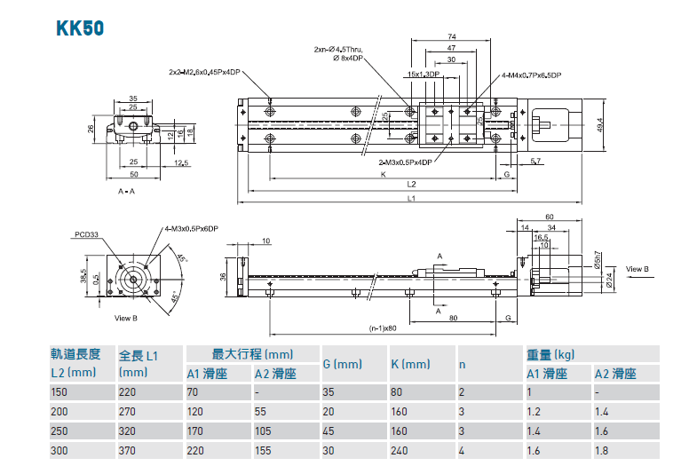 錦榮直線模組KK5002C-250A1-F0,上銀KK直線模組/工業(yè)機器人特點如下: