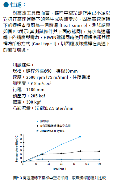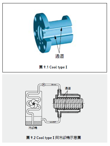 上銀滾珠絲桿,超高值Dm-N值-cool Type 1 搭配絲杠中空冷卻可得到最佳的溫控品質(zhì)與精準(zhǔn)度,此形式產(chǎn)品非常適合用在高速工具機(jī)和高速加工中心.cool Type 1 滾珠絲杠在螺帽內(nèi)通過強(qiáng)制冷卻液體,以降低滾珠絲杠操作在高速運(yùn)轉(zhuǎn)時的熱源產(chǎn)生的熱膨脹現(xiàn)象,以達(dá)到高速化和高精度的目的.,液體在螺帽的通道內(nèi)循環(huán)流動,并與冷卻機(jī)進(jìn)行熱交換作用,同時搭配絲杠中空冷卻可得到最佳的溫控品質(zhì)與精準(zhǔn)度.