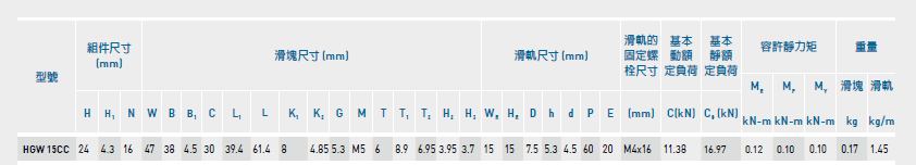 HGW15CC上銀直線導(dǎo)軌參數(shù)如下圖: