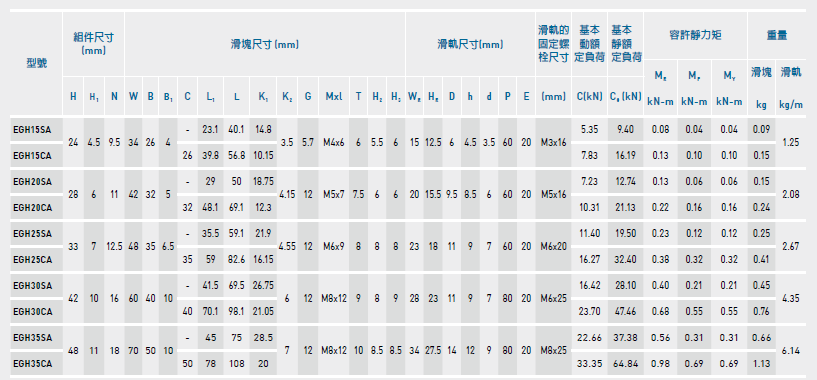 上銀導(dǎo)軌EGH35SA,上銀直線導(dǎo)軌EGH35SA滑塊