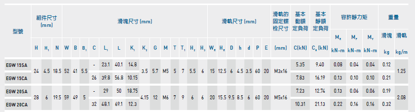 高組裝系列:HGH-CA /HA、HGW-CA/HA 規(guī)格大?。?5~65;低組裝系列:EGH-SA/CA、EGW-SA/CA 規(guī)格大?。?5~30