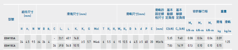 上銀導軌EGH15CA臺灣上銀直線導軌EGH15CA