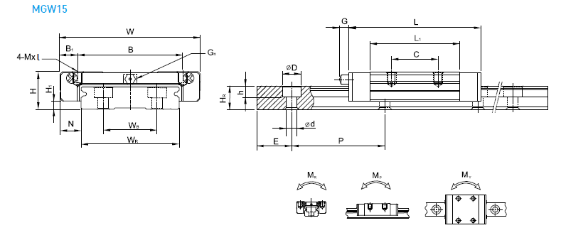 上銀直線導軌MGW15H系列獨特的雙排安裝孔設計,性能更加優(yōu)越,穩(wěn)定.